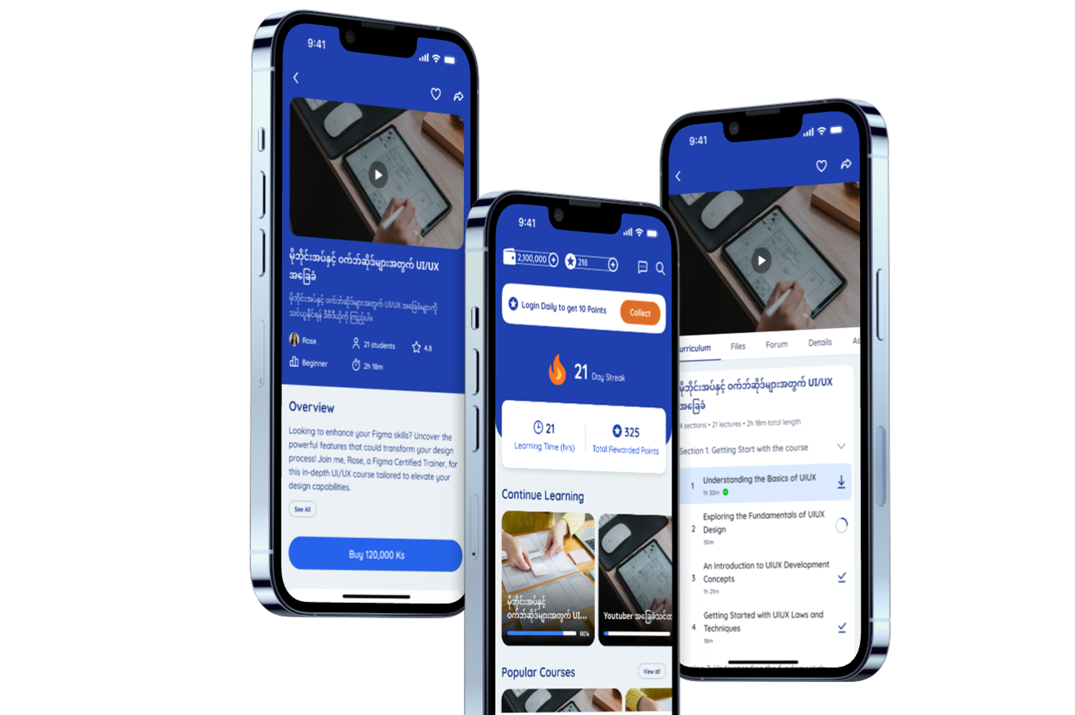 Psychology 101, Notion 101, Peak Productivity နဲ့ Fat Loss လိုမျိုး Life & Career အတွက် မရှိမဖြစ် Class တွေကို တစ်နေရာတည်းမှာ စုံစုံလင်လင် လေ့လာနိုင်ပါတယ်။ Offline Download လည်းလုပ်လို့ရတော့ ကြိုက်တဲ့အချိန်သင်ယူနိုင်တာပေါ့။